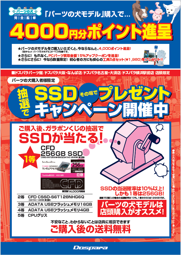 2015年09月18日 パーツの犬 シルバーウィーク店頭限定キャンペーン 9/19(土)~23(水)まで開催! パーツの犬 組み立てキット シルバーウィークキャンペーン!連休中にPC組み立てを考えている貴方に朗報!続きを読む