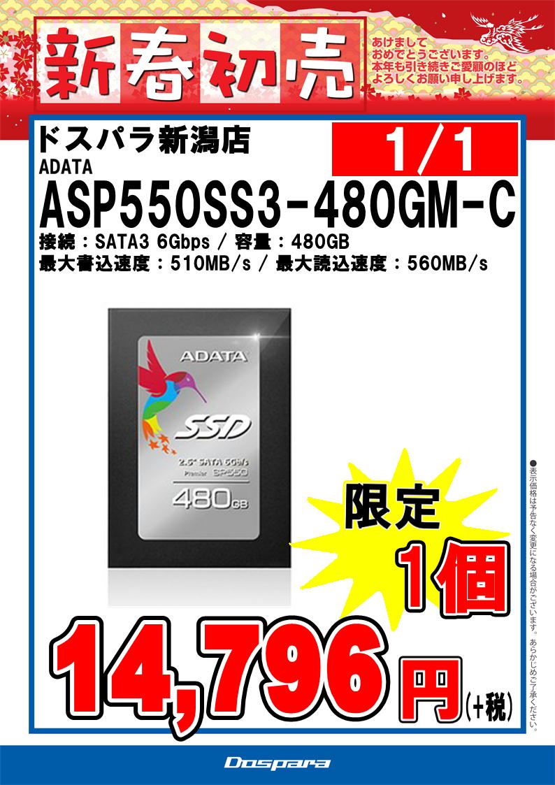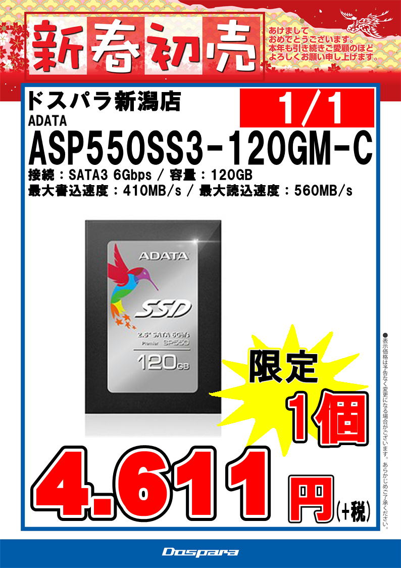 ドスパラ新潟店、1/1より新年営業、初売りセールを開催いたします。