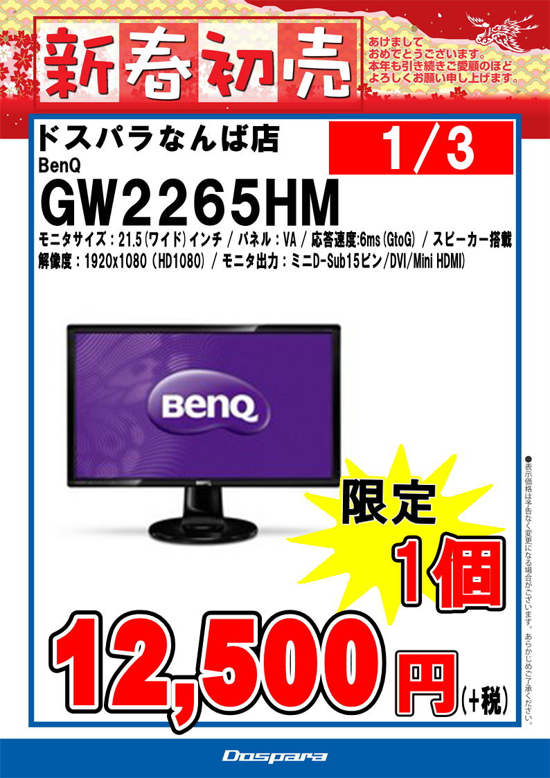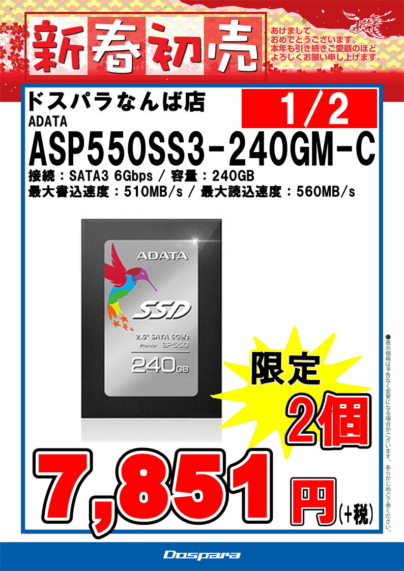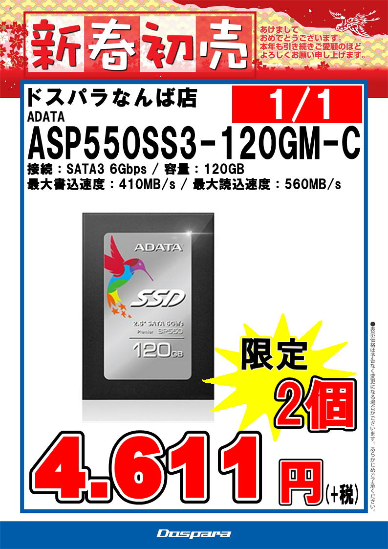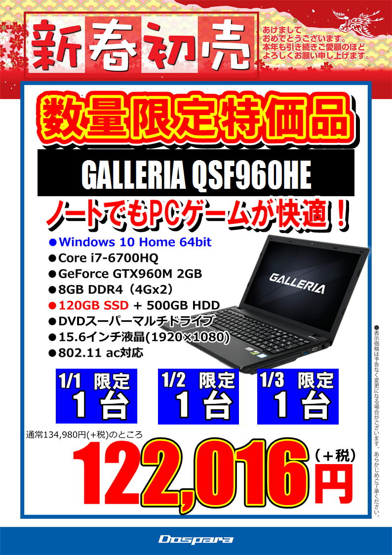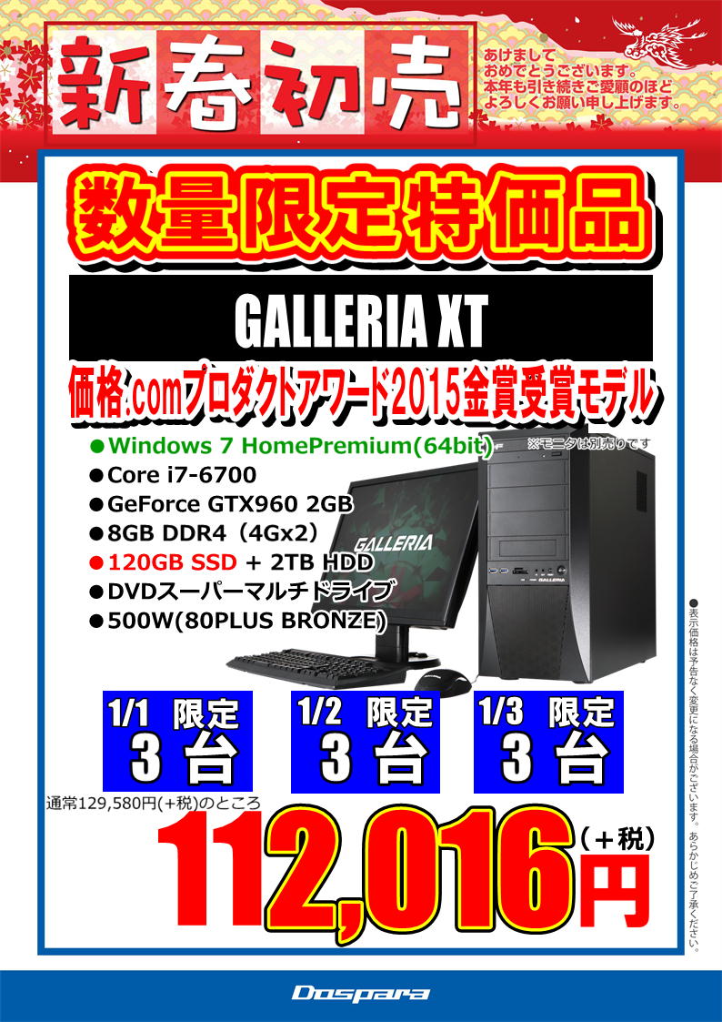 ドスパラなんば店、1/1より新年営業、初売りセールを開催いたします。