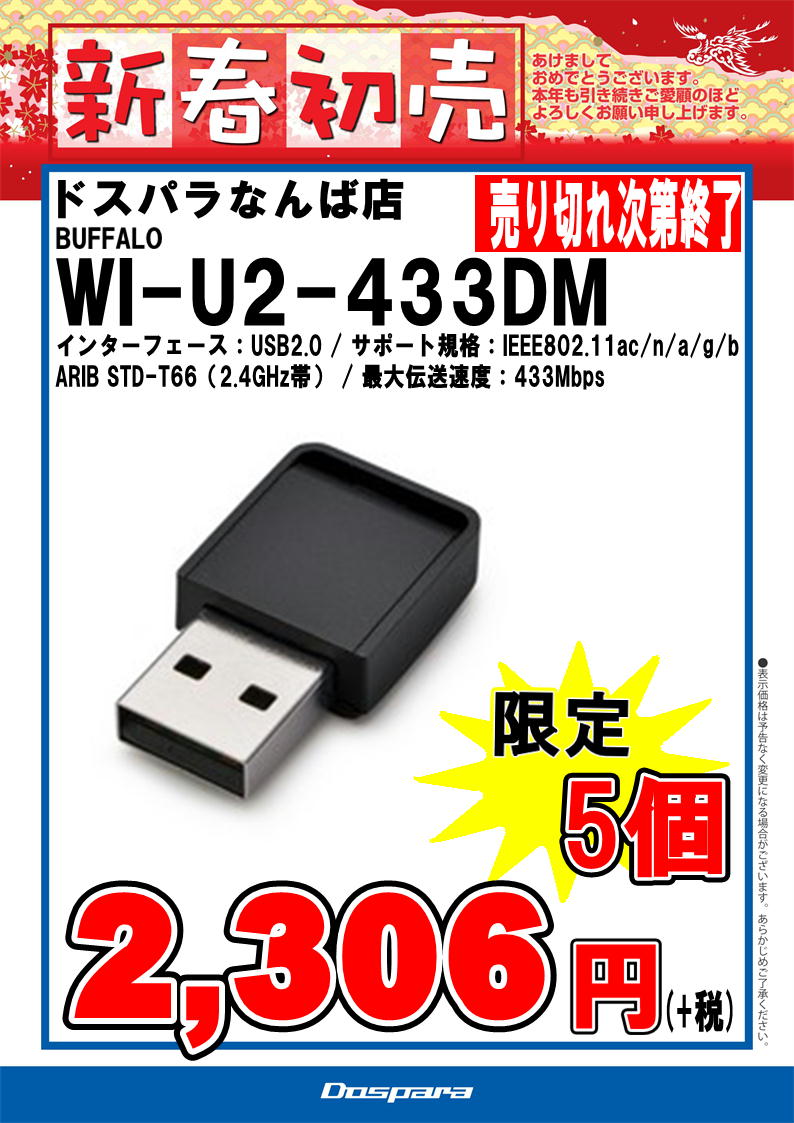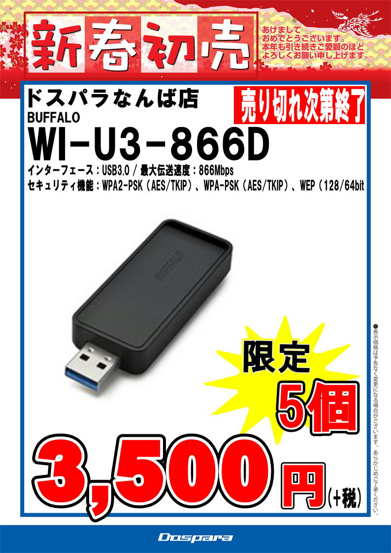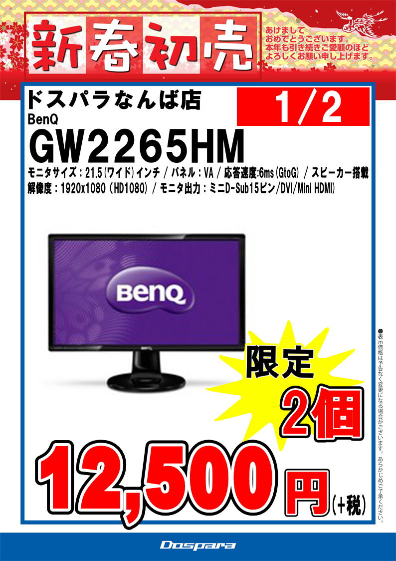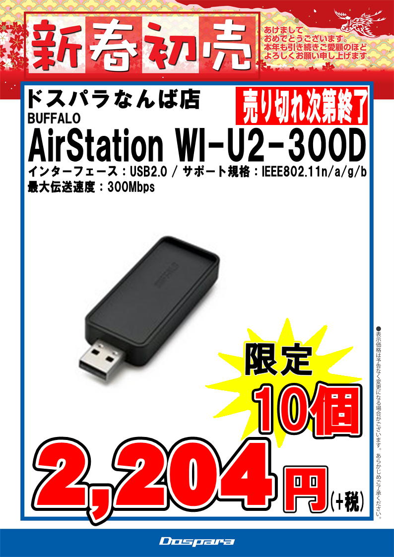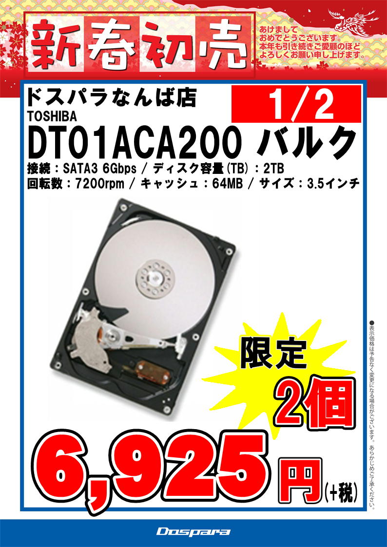 ドスパラなんば店、1/1より新年営業、初売りセールを開催いたします。
