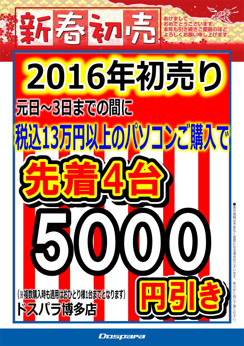 2016年も変わらず ドスパラ博多店をご愛顧いただけます様お願い致します。