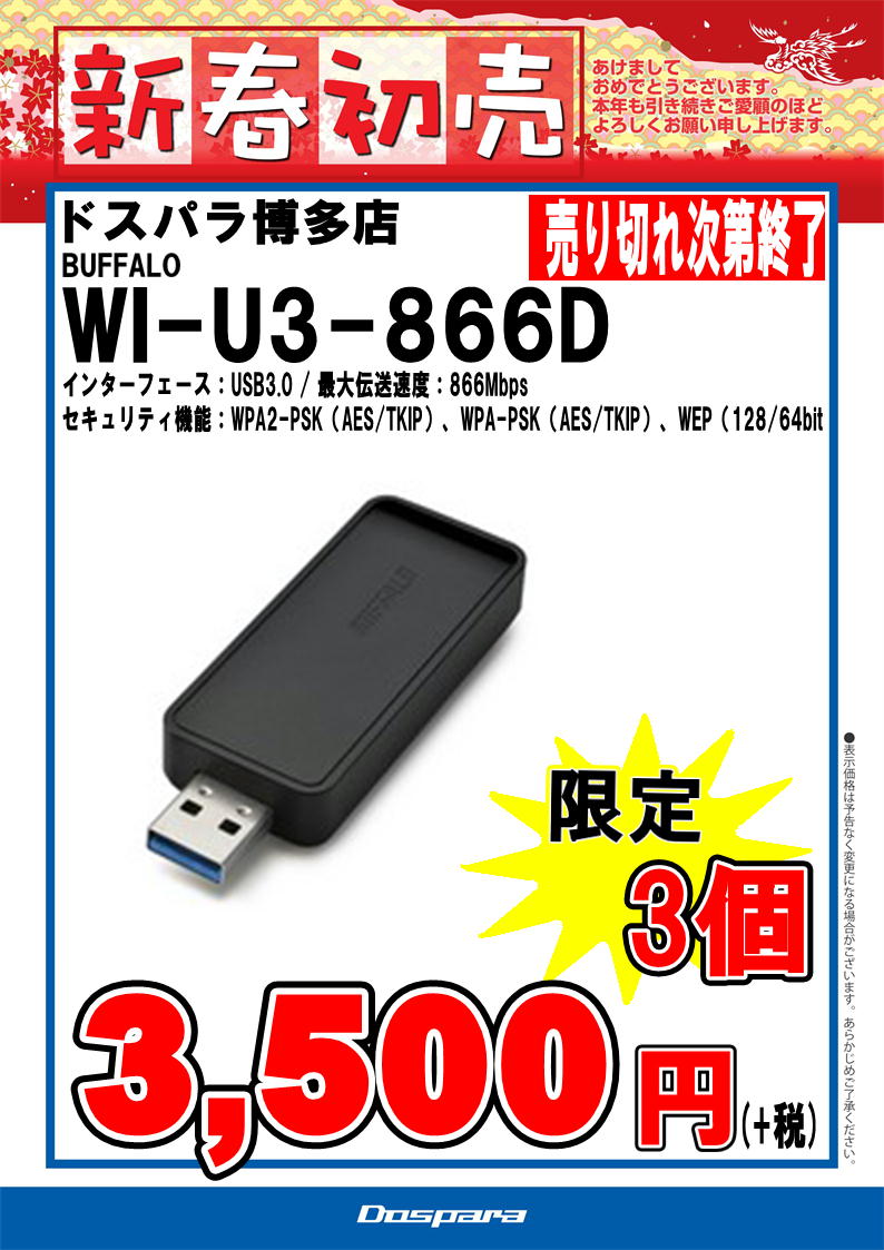 ドスパラ博多店、1/1より新年営業、初売りセールを開催いたします。