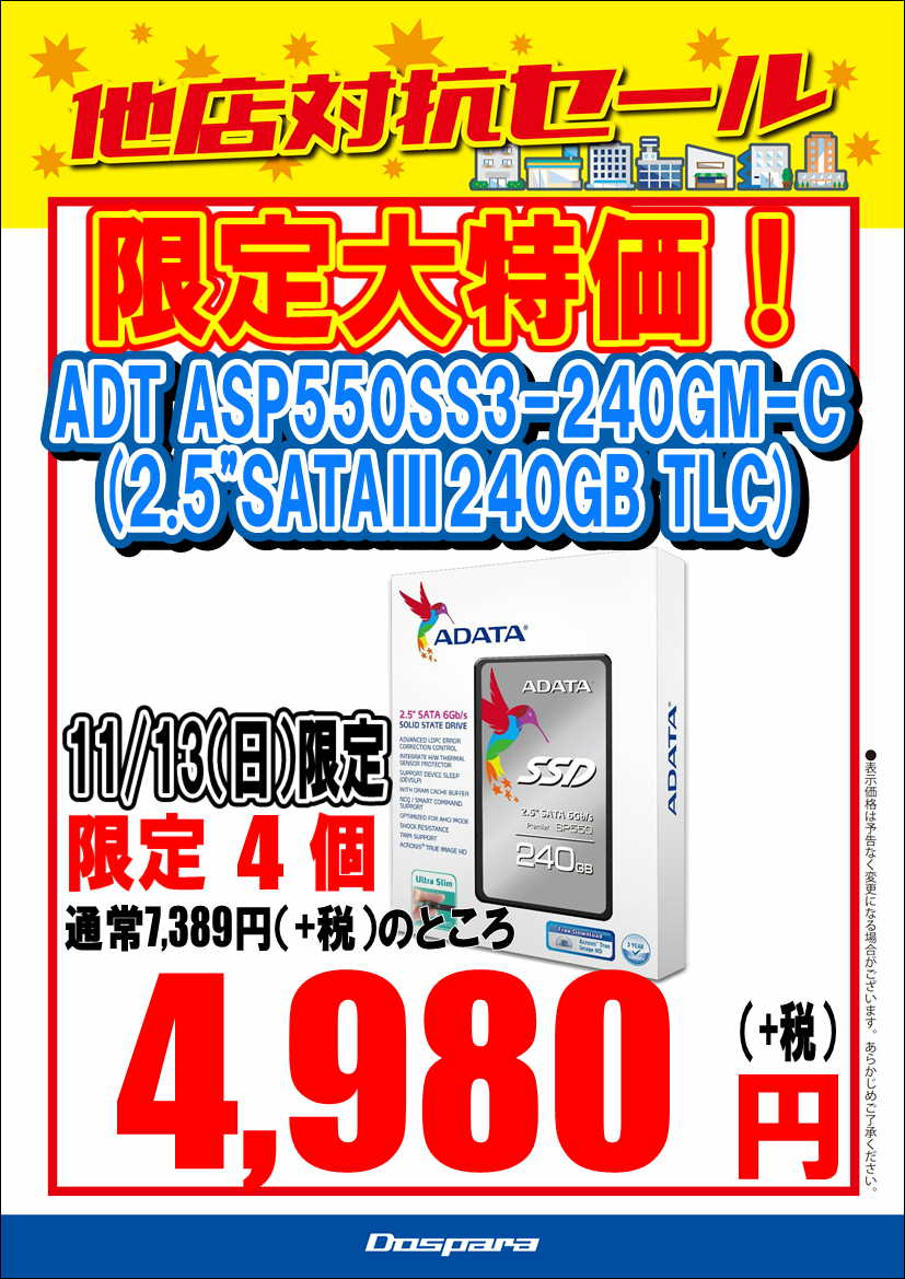 ADT ASP550SS3-240GM-C (2.5"SATAⅢ240GB TLC) 4,980-(+税)