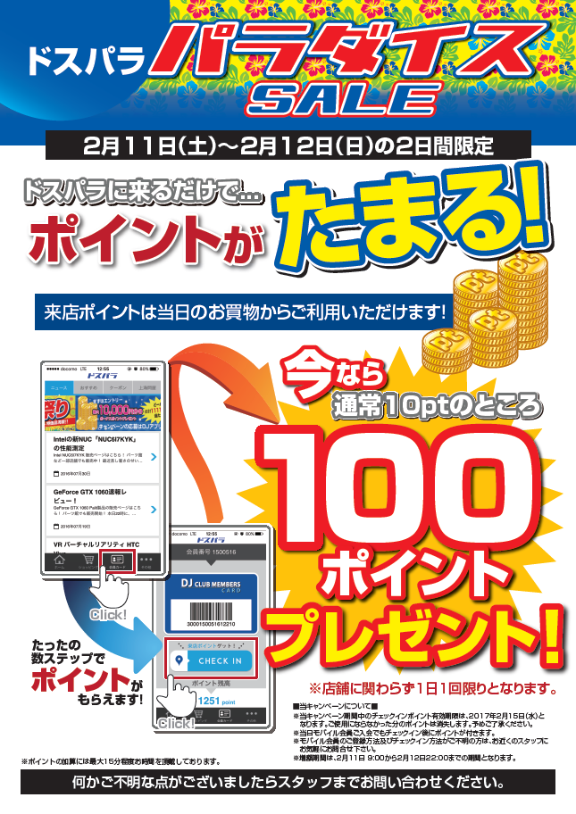 今週末ドスパラへご来店してチェックインすると来店ポイント10倍!