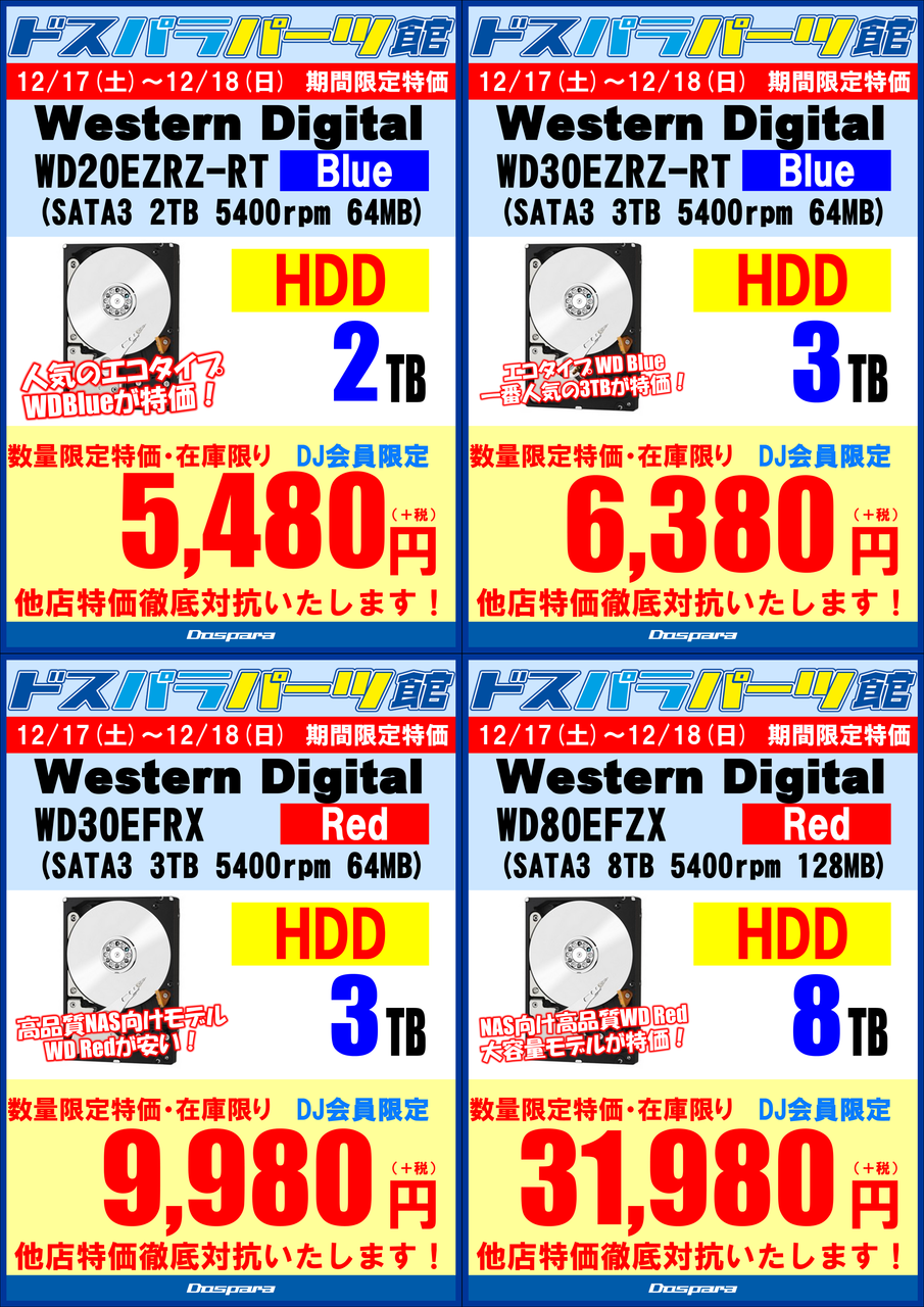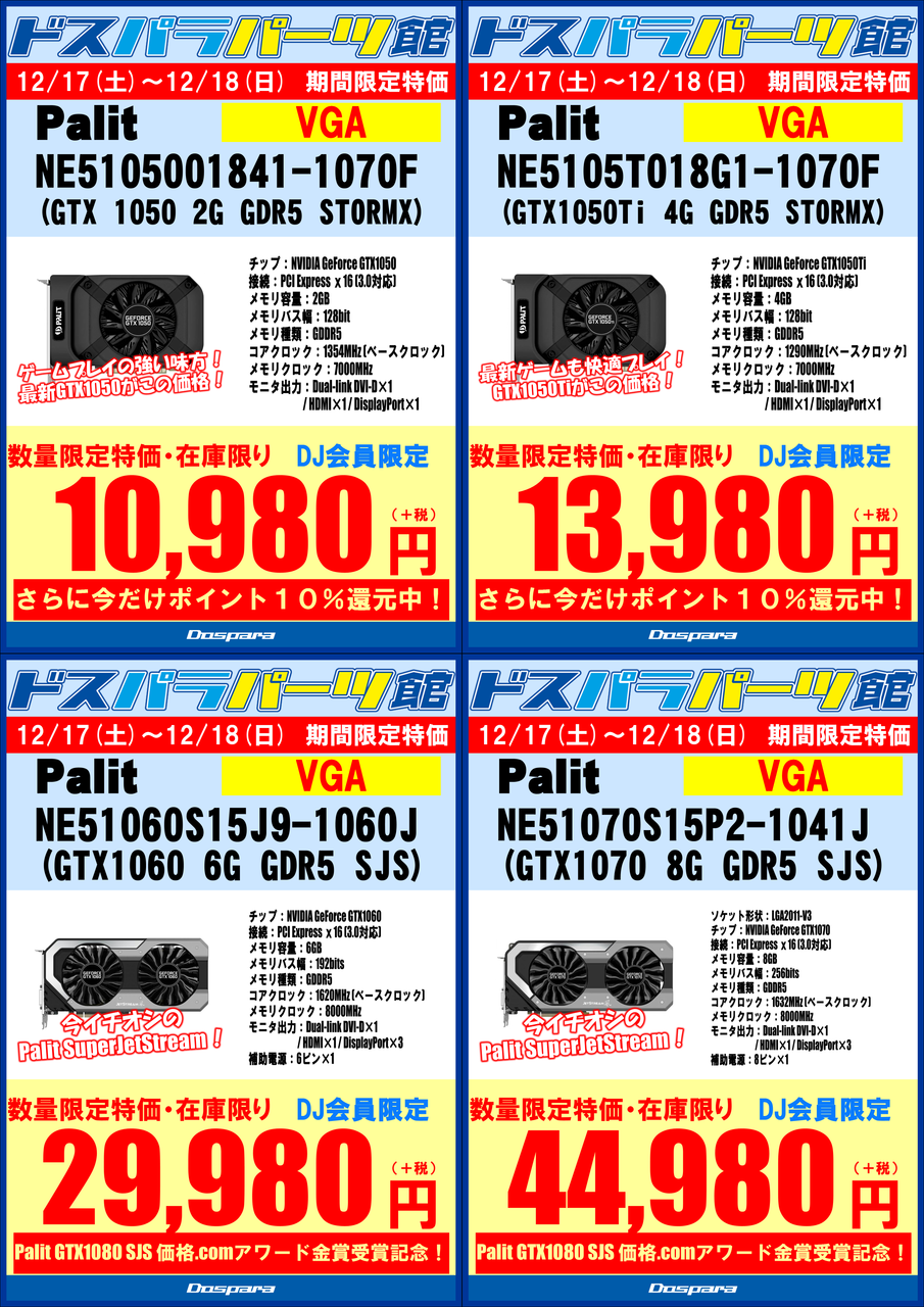 2016年12月16日 【パーツ館限定】12/17~18週末特価情報 年末年始は自作パソコンにチャレンジ!ドスパラパーツ館は週末限定でお買い得商品を満載!パーツ値上がり傾向の今だからこそ押さえておきたい特価商品はこちら!